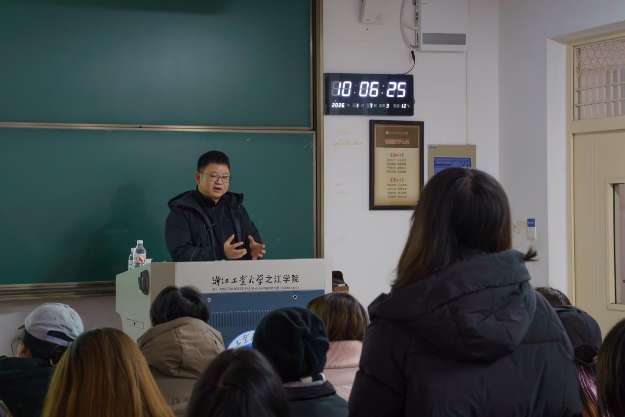 为深化校一流课程“影视制作基础与实践”的教学实践,拓宽学生行业视野,1月7日,该课程期末环节特邀中国美术学院副教授、硕士生导师、青年导演宓鑫君开展“泛影像时代类型交织与影视摄像”主题讲座。讲座以前沿AI技术分享、实践案例解析与创作理念指引为核心,为师生带来一场兼具专业性与启发性的思想交流。