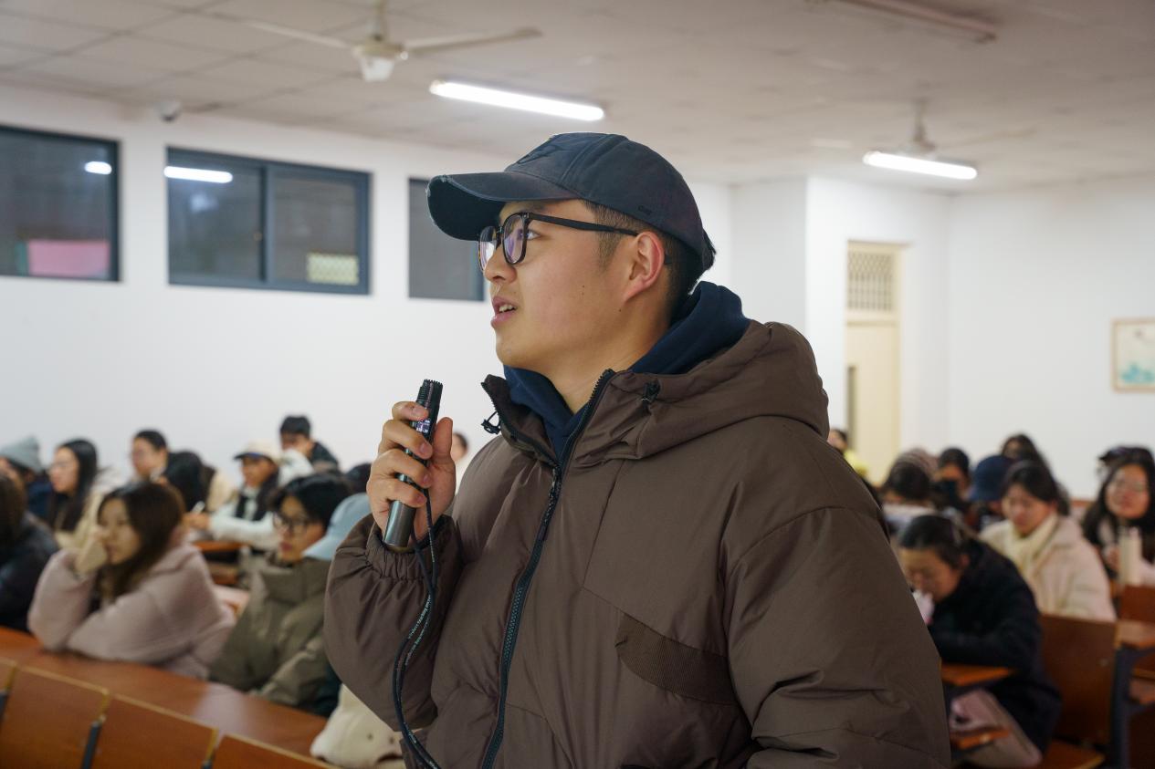 讲座尾声,宓鑫君导演将创作视野提升至文化传承与强国建设的高度。他寄语青年学子,影视创作不仅是技术与艺术的结合,更承载着文化传播的使命,要在作品中融入文化内涵,树立文化传承的责任意识,以长远眼光深耕行业,立大志、成大才,用优质影像讲好中国故事。